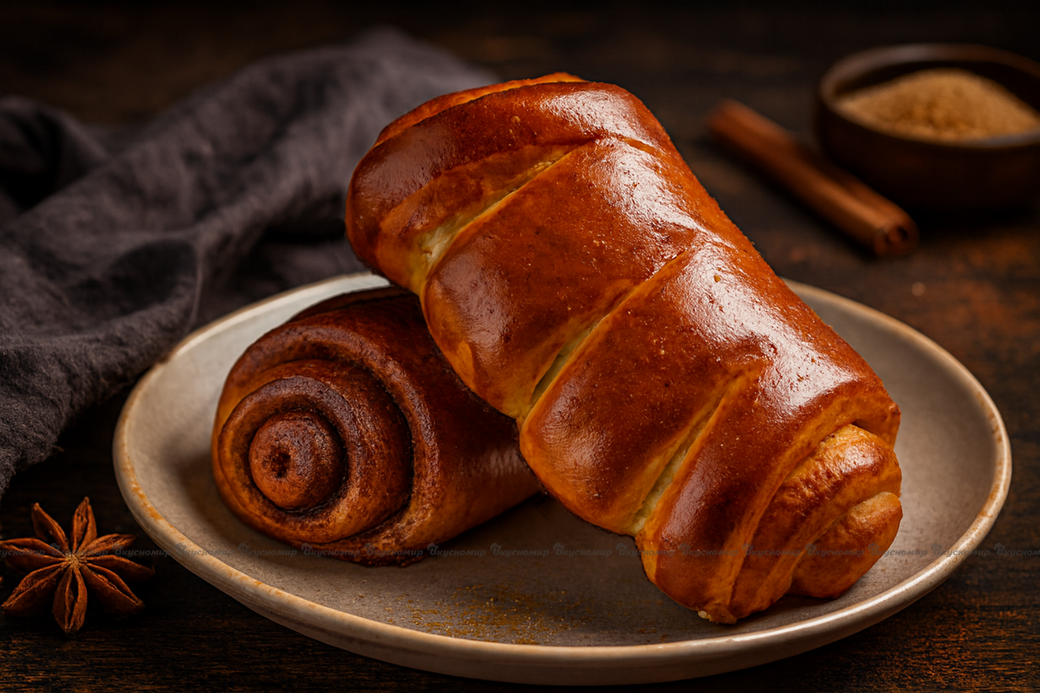 Сдобная булочка с тонким слоем ароматной корицы внутри.