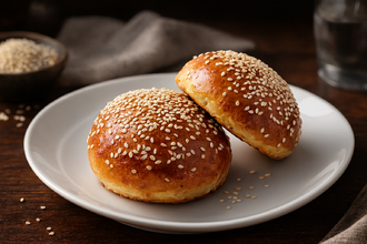 | Состав | Тесто дрожжевое сдобное (мука пшеничная, вода, яйцо кур., маргарин для выпечки, сахар, дрожжи прессованные, соль, ваниль), изюм, кунжут. |