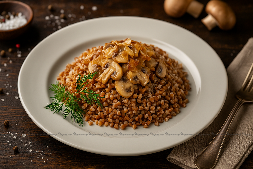 | Состав | Крупа гречневая, шампиньоны, лук репчатый, масло растительное, соль, специи. |