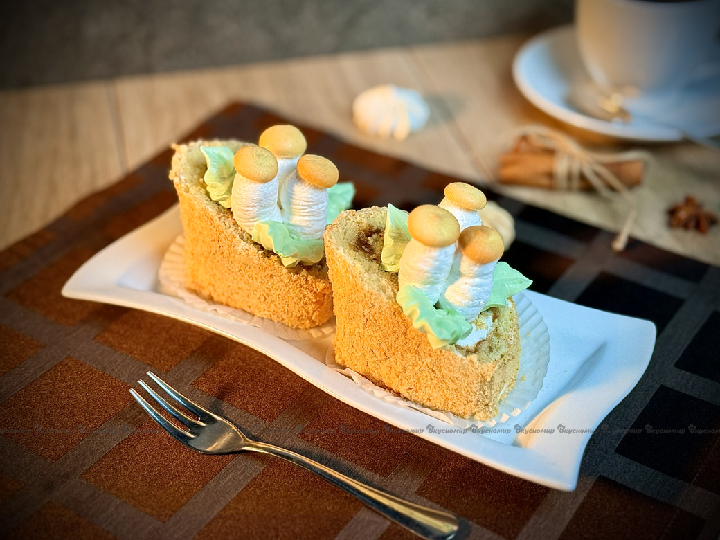 | Состав | Бисквит ( яйцо куриное, сахар, мука, крахмал), сироп для пропитки (сахар, вода), крем белковый заварной (сахар, белок яичный, вода, ваниль, краситель пищевой), начинка (повидло яблочное). |