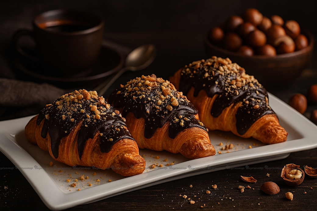 Мягкая, воздушная выпечка из сдобного слоеного теста с марципановой начинкой внутри, сверху обильно политая шоколадной глазурью и посыпанная молотым арахисом.