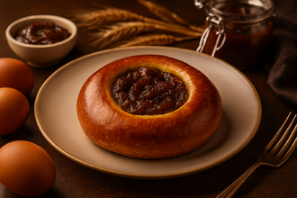 | Состав | Тесто дрожжевое сдобное (мука пшеничная, вода, яйцо кур., маргарин для выпечки, сахар, дрожжи прессованные, соль, ваниль), повидло яблочное. |