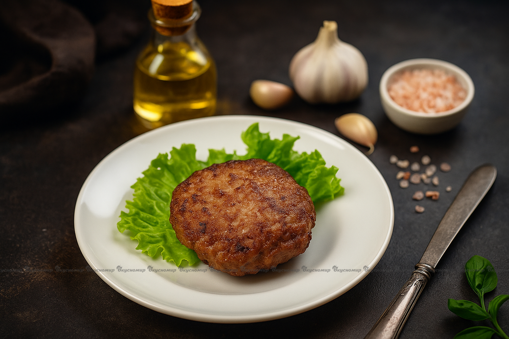 Блюдо из говядины и свинины приготовленное особым способом. Из подготовленного натурально-рубленого фарша формуют изделия плоской круглой формы и жарят без панировки на раскаленной сковороде. Получается очень вкусный, сочный бифштекс с аппетитной румяной корочкой.