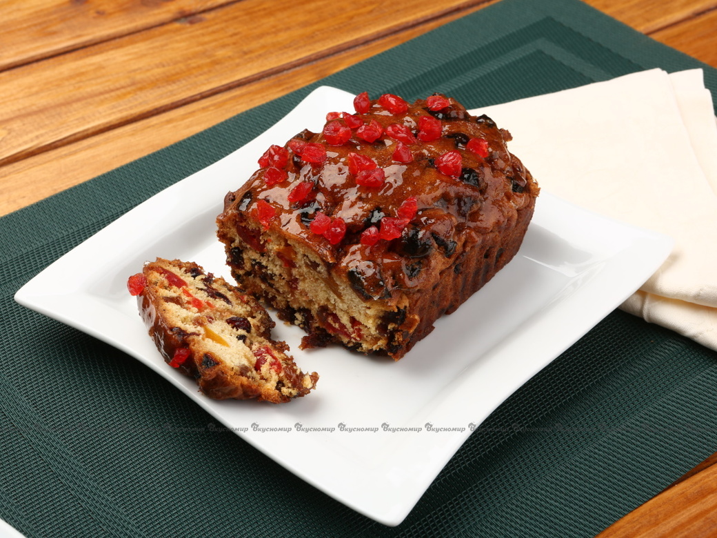| Состав | Тесто (цукаты, мука в/с, яйцо куриное, масло сливочное, изюм, курага, сахар, специи (кардамон, мускатный орех, корица), мед, цедра апельсина, аммоний двууглекислый; пропитка (коньяк, сахарный сироп); декор (глазурь кондитерская, цукаты из вишни). |