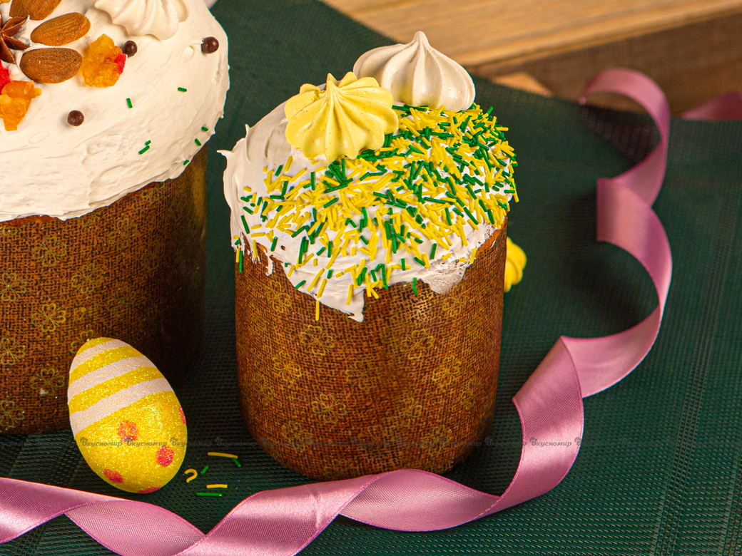 Главное украшение пасхального стола – красивые разноцветные яйца-крашенки и необыкновенно нежные, воздушные, ароматные и очень сдобные куличи с нотками ванили! На Пасху куличи приносят в дом радость, берегут семью и символизируют радость Воскресения. Пасхальные куличи от «Вкусномира» готовятся только из натуральных продуктов, в них много яиц, молока и сметаны. Поэтому наши пасхальные куличи и получаются такими вкусными и сочными.