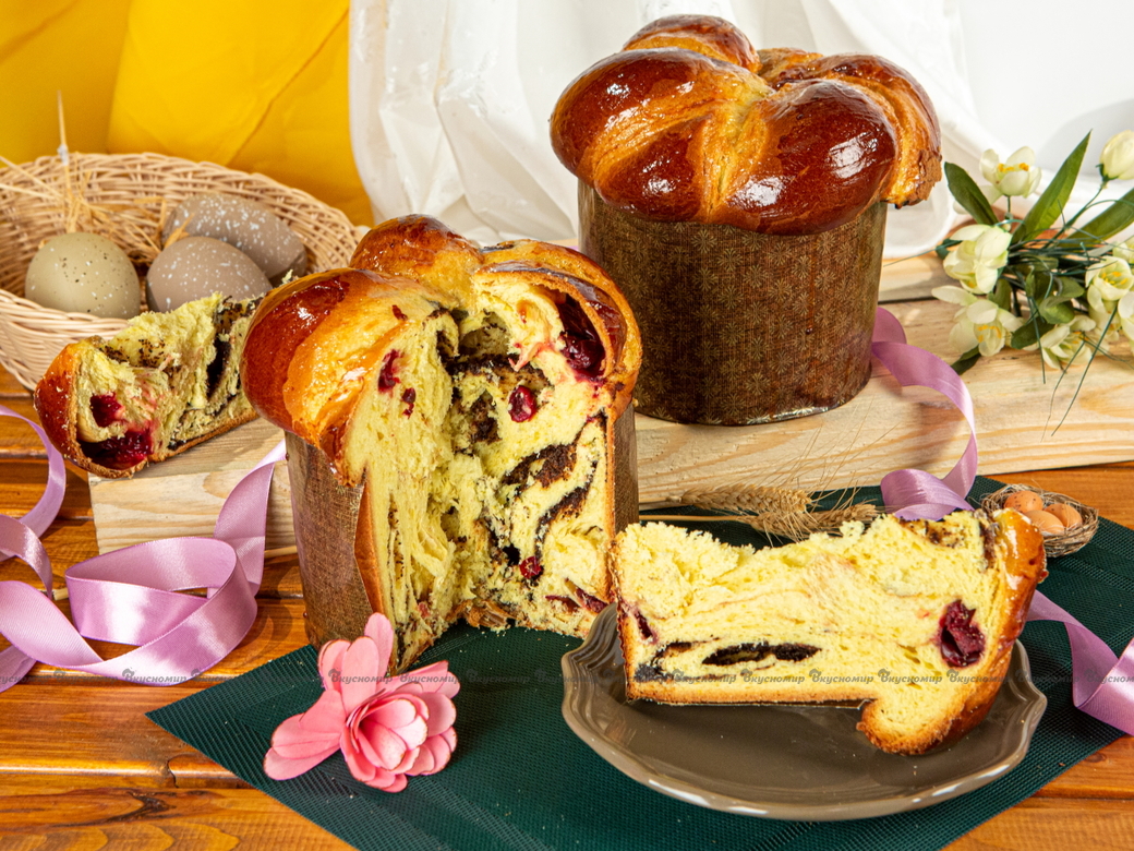 Вишня и мак — одно из традиционных сочетаний для выпечки, потому что эти начинки отлично дополняют друг друга. При приготовлении пирога с вишней и маком кондитеры «Вкусномира» выкладывают каждую из начинок на пласт сдобного теста и сворачивают его в виде рулета, который сплетают в косу и укладывают в форму. Получается очень красиво, а главное - вкусно. На пасхальное семейное торжество этот замечательный пирог порадует всех ваших домочадцев и гостей праздника.