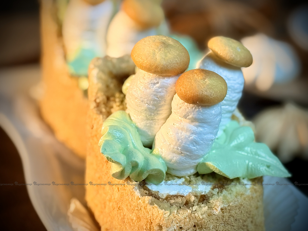 | Состав | Бисквит ( яйцо куриное, сахар, мука, крахмал), сироп для пропитки (сахар, вода), крем белковый заварной (сахар, белок яичный, вода, ваниль, краситель пищевой), начинка (повидло яблочное). |