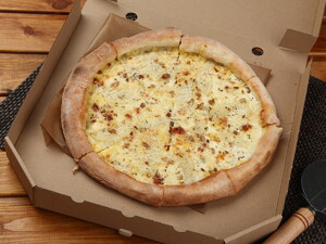 Название пиццы «4 сыра» говорит само за себя: её богатый вкус обусловлен замечательной сырной начинкой. Пицца «4 сыра» относится к типу белых пицц, в которые не кладётся традиционный для большинства пицц томатный соус и помидоры. Самое главное тут – сыры, а точнее, их сочетание. Молодой мягкий итальянский сыр «Моцарелла», сладковато-сливочный «Радомер», твёрдый выдержанный «Пармезан», и конечно, сыр с голубой плесенью «Дорблю». Каждый из сыров играет свою партию в гамме вкусов пиццы «4 сыра» от "Вкусномира", которую непременно нужно попробовать!