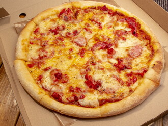 | Состав | Тесто (мука в/с, вода, яйцо куриное, масло растительное, дрожжи прессованные, соль, сахар), сыр Моцарелла для пиццы, перц болгарский, колбаска копченая, соус (помидор свежий, лук репчатый, масло растительное, чеснок, соль, специи), сыр Филадельфия. |