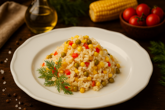 | Состав | Перец болгарский, рис отварной, горошек зеленый, кукуруза, лук репчатый, масло растительное, соль, специи. |