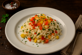 Рис - самый главный злак планеты, основа питания целых стран и континентов. Рис с овощами - вкусное и полезное самостоятельное блюдо, которое приятно разнообразит ваше постное меню. К тому же блюдо богато витамином А и аминокислотами.