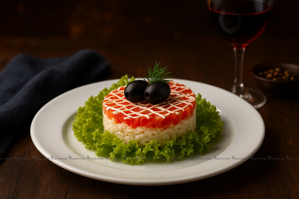 | Состав | Помидор свежий, брынза, майонез, оливки, зелень (при желании майонез можно заменить на растительное масло). |