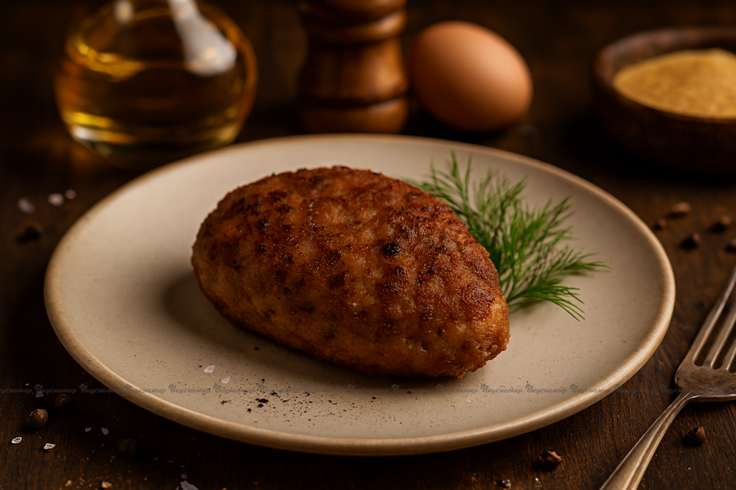 | Состав | Мякоть говядины, сало свиное, яйцо, масло растит., сухари панировочные. |