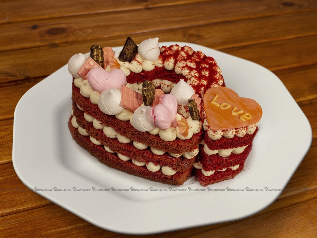 Торт «Красный бархат» - это удивительное сочетание сочных и бархатистых коржей с нежным и гладким сливочным кремом. Эффектный, вкусный, очень сытный торт "Красный бархат" заставляет учащенно биться сердца многих сладкоежек. Мягкий сочный бисквит просто тает во рту! Торт «Красный бархат» выглядит великолепно: яркий красный цвет коржей и белоснежный крем делают десерт торжественным и запоминающимся! Он по праву займет центральное место за вашим праздничным столом!