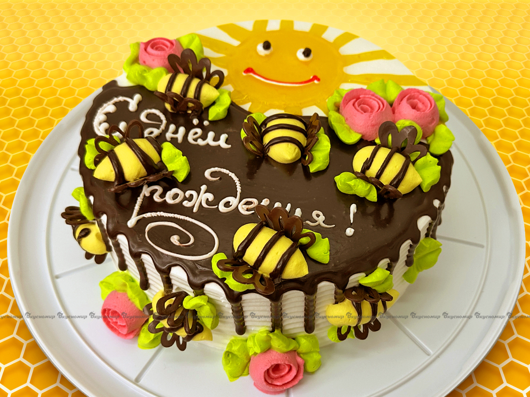 На «Вкусномире» вы можете заказать торт С ЛЮБЫМ ОФОРМЛЕНИЕМ ИЛИ НАДПИСЯМИ.